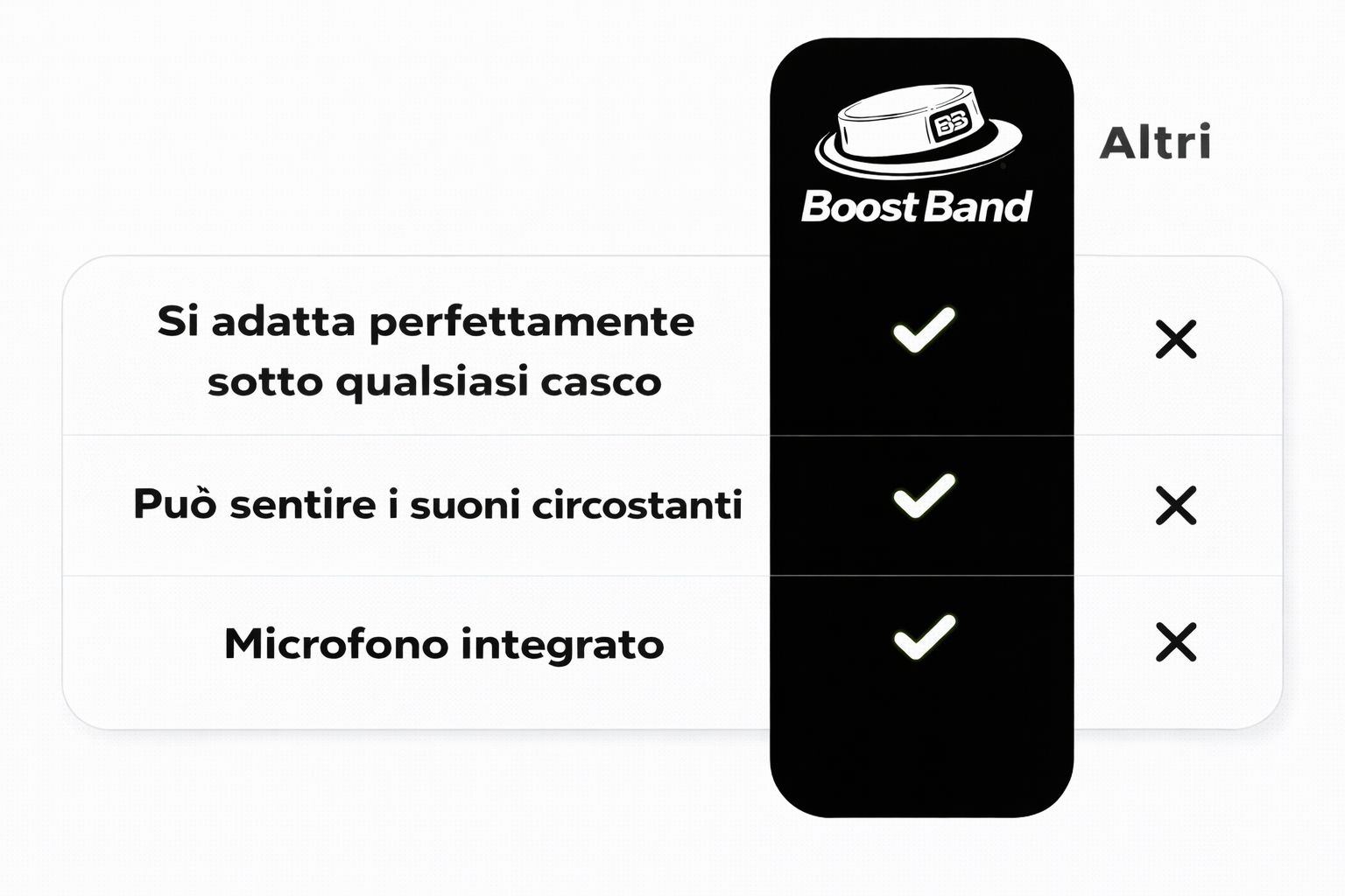 Con Boost Band vivi la tua musica mentre ti muovi, senza auricolari e senza limiti.Comfort totale, massima stabilità, libertà assoluta.